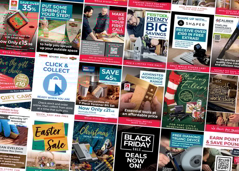 The task was... for the design, production, and management of core print materials, such as the annual catalogue and sales periodicals, to drive revenue for Axminster Tools. These publications served a dual strategic purpose: retaining existing loyal customers and acquiring new business through high-impact marketing. The key challenge was to accurately translate vast product information (thousands of SKUs) into visually compelling, brand-compliant layouts under strict deadlines
